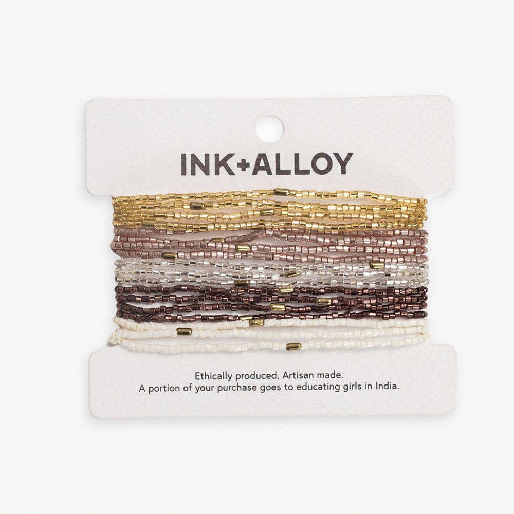 For the free-spirited trendsetter who refuses to just blend in, we present the Chelsea 18 Strand Luxe Beaded Stretch Bracelet Set in a covetable Mixed Metallic finish. This show stopping stack is a true celebration of unrestrained bohemian glamour and artisanal craftsmanship. Featuring a dazzling array of 18 individual bracelets bedecked in gleaming gold, burnished copper, and antique silver beads, the Chelsea set instantly electrifies any look with its opulent, eye-catching interplay of mixed metals. Each stretchy strand shimmers and glows, creating a striking arm party that's utterly mesmerizing.