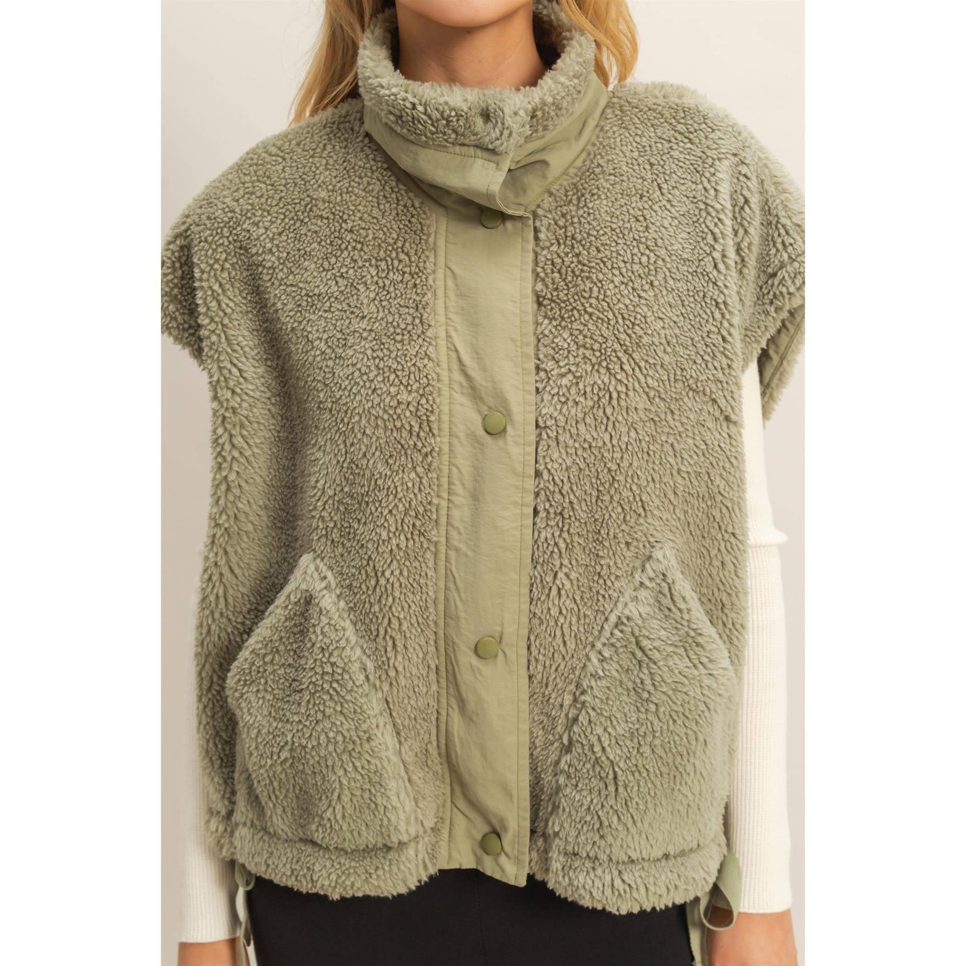 Stay warm and stylish with the Taylor Cozy Sherpa Vest. Crafted from soft, plush sherpa fabric, this vest provides lightweight insulation perfect for layering on chilly days. Its versatile design easily pairs with any outfit, adding both comfort and a cozy touch. Ideal for outdoor activities or casual wear, the Taylor vest is your go-to piece for effortless warmth without bulk.