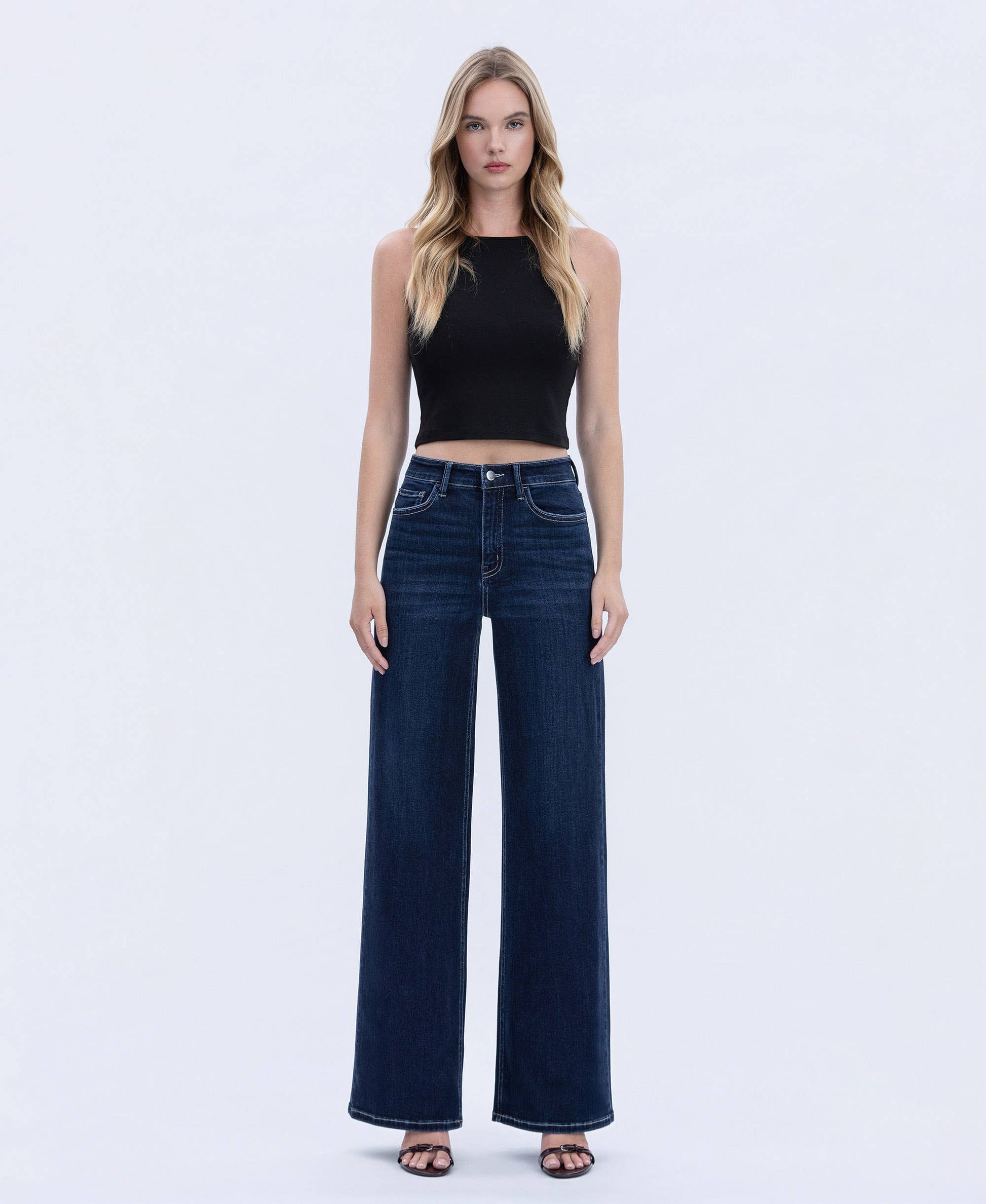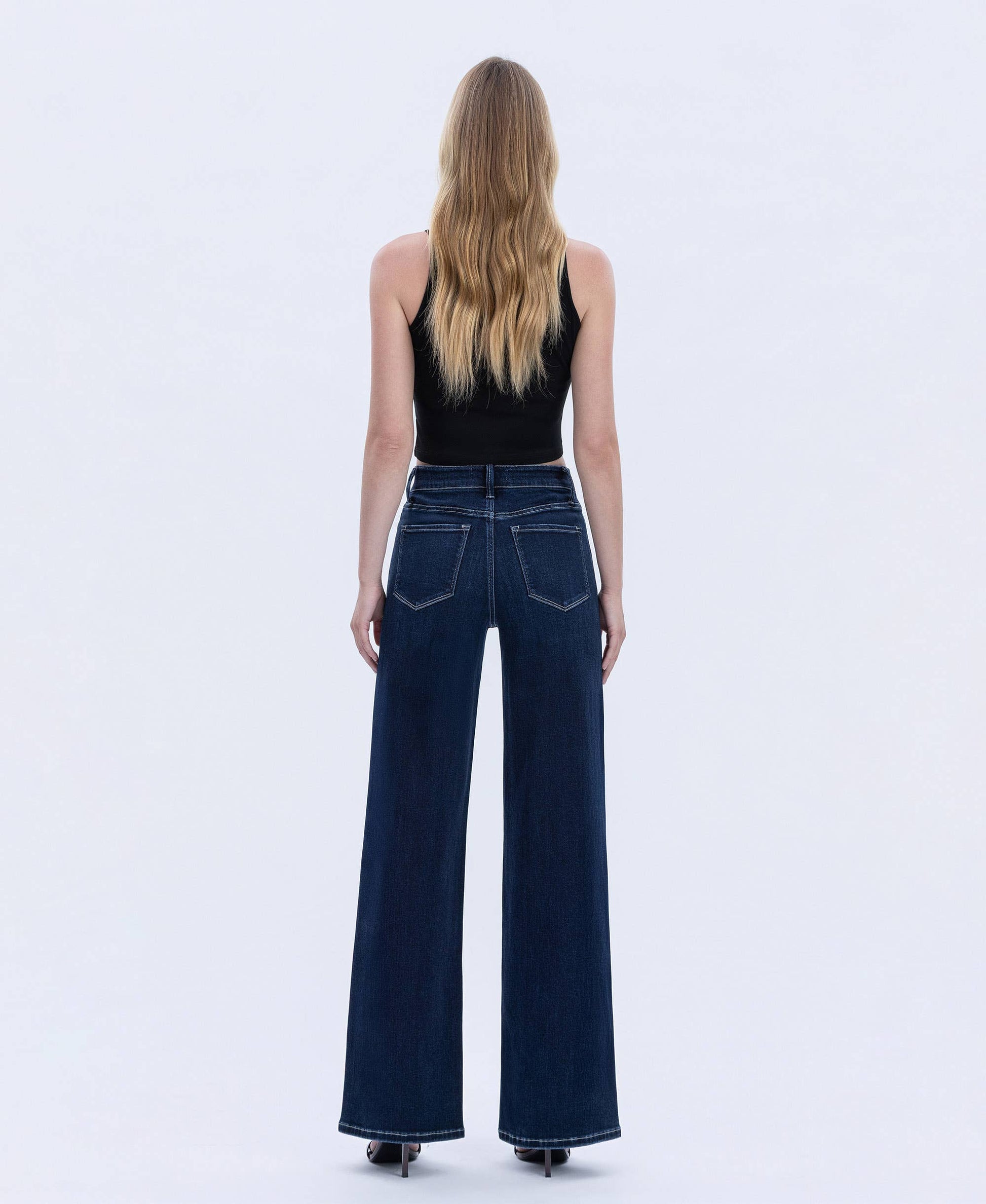 Elevate your denim game with these high-rise dark jeans that deliver both comfort and timeless style. The full-length cut and wide leg silhouette create a flattering, relaxed fit that works effortlessly from day to night. Perfect for pairing with everything from sneakers to heels, these versatile jeans offer the structured support of a high waistband while the rich dark wash keeps them looking polished and put-together. A wardrobe essential that never goes out of style.