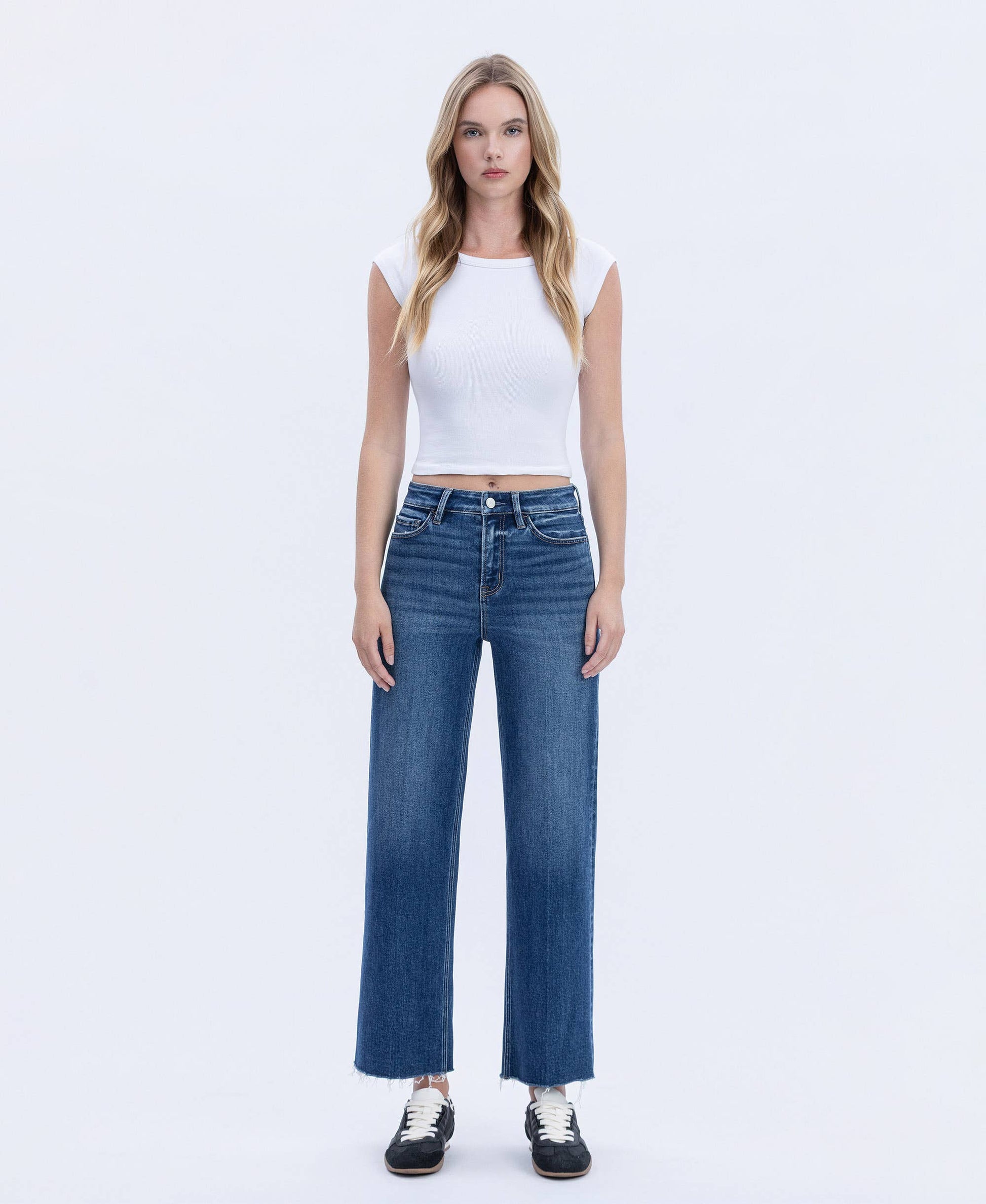High Rise Trouser Wide Leg Jeans Elevate your denim game with these sophisticated high-rise trouser jeans that deliver timeless style and modern comfort. The wide-leg silhouette creates a flattering, elongated line while the high-rise waist provides excellent support and a polished look that works from office to weekend. Crafted for versatility, these jeans pair effortlessly with everything from fitted tops to oversized blazers. The structured fit ensures you'll reach for them again and again, making them an essential addition to any wardrobe. Experience the confidence that comes with denim that fits just right.