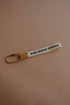Perfect to carry all of your keys on! -Wristlet is 3/4" x 6 1/2" on woven fabric with 2" gold carabiner. -Cross symbol stamped onto 1" leather tag attached to carabiner. -"Make Heaven crowded" printed on fabric.