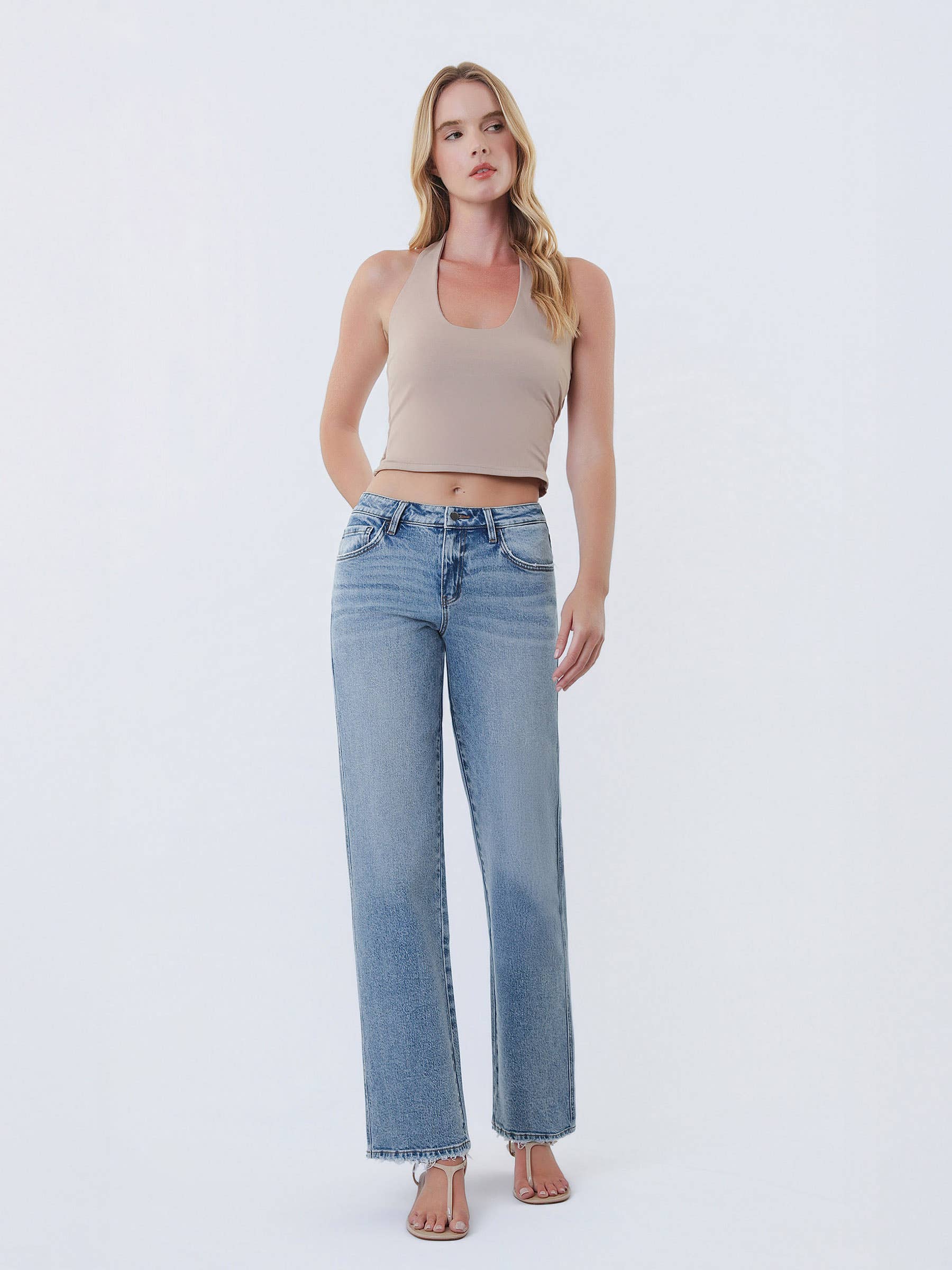 Elevate your everyday style with these versatile mid-rise jeans that strike the perfect balance between comfort and sophistication. The medium wash delivers a timeless, flattering look that pairs effortlessly with any top in your wardrobe. Designed with a slim-wide silhouette, these jeans offer a contemporary fit that flatters various body types while maintaining a polished appearance. The mid-rise waistband sits at just the right height for all-day wear without compromising on style. Whether you're dressing up for a night out or keeping it casual, these jeans are the reliable foundation piece every wardrobe needs.