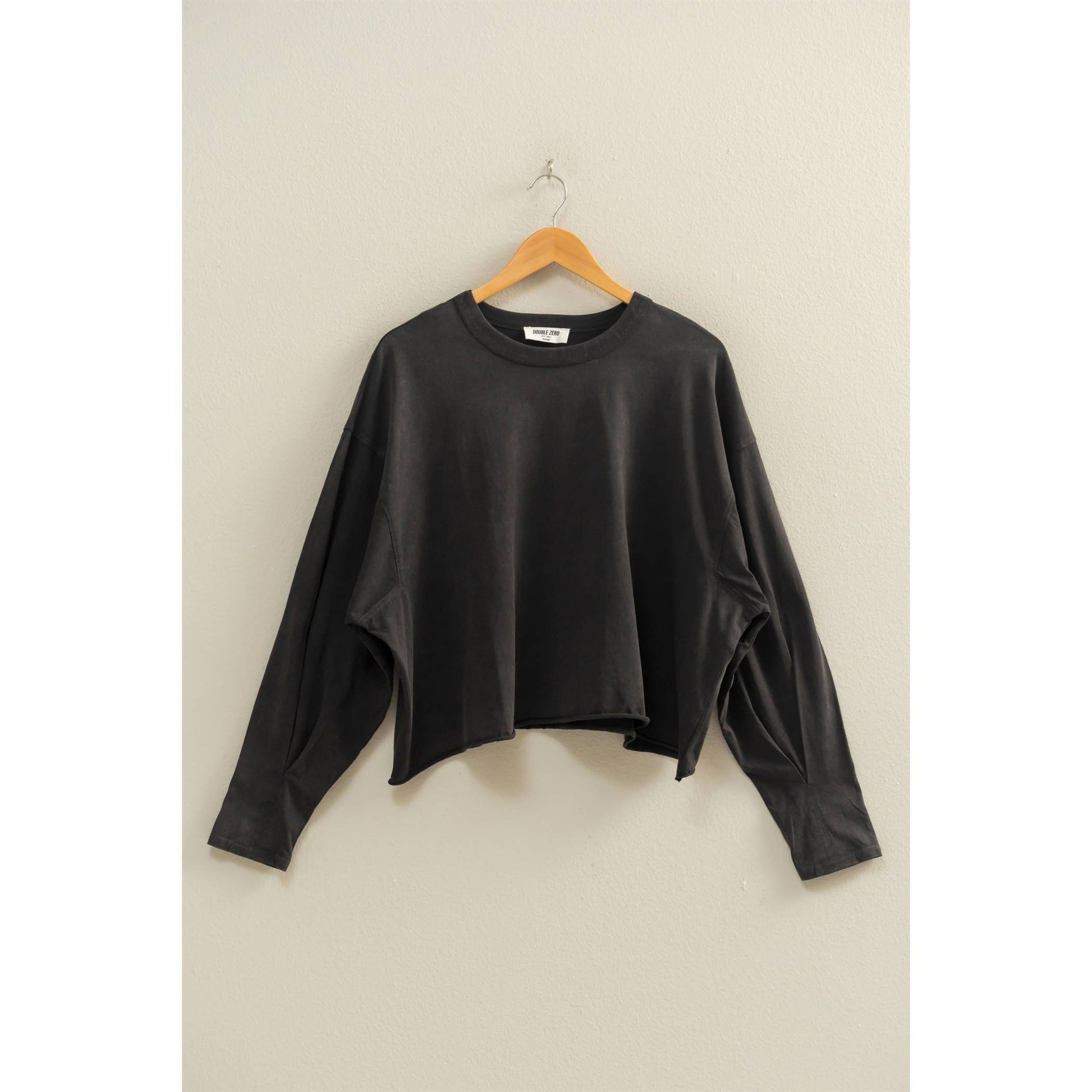 Experience effortless comfort and style with the Washed Oversized Long Sleeve Top. Its mineral-washed fabric offers a soft, lived-in feel that only gets better with time. The relaxed oversized fit provides freedom of movement and a casually chic look, perfect for layering or wearing on its own. Upgrade your wardrobe with this versatile piece that pairs seamlessly with jeans or leggings for an effortlessly cool vibe.